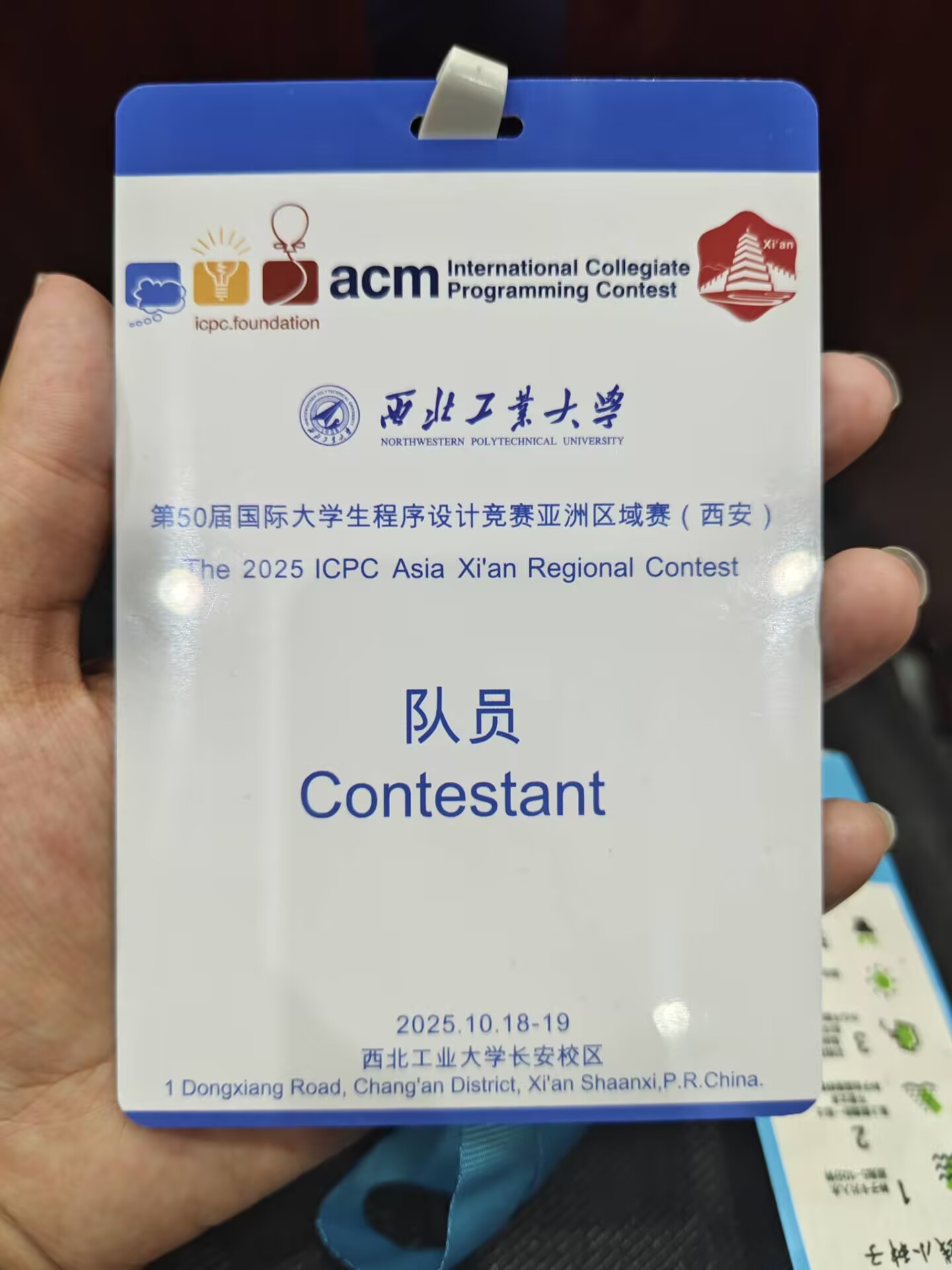 这时封榜了,看了眼排名在二百零几名,这时还在心存侥幸想最后1h应该过不了30多人,zyh又交了F题但是还是wa,表示感觉代码没问题,我想出了I题的一个本质错误,这时还剩二十几分钟,火速把I题重新写了一遍,过程中zyh怀疑可能是输出换行的问题,于是改了一下,交了还是不对,我又把I题写完了,匆忙交了一发,一样的wa,这时就只剩几分钟了,心里清楚可能3题结束了,默默在心里祈祷不要掉出铜线,主持人开始倒计时,3,2,1,结束了,收拾东西过程中想起来再看一下封榜前的排名,结果发现好像解榜了,迅速看了一眼自己的排名,发现除掉前面的打星队刚好是铁首,心里咯噔了一下,此时三人都在紧盯着屏幕,反复确认希望看到的不是真的,突然,电脑屏幕黑了,是技术组断电了,一切都结束了。。。