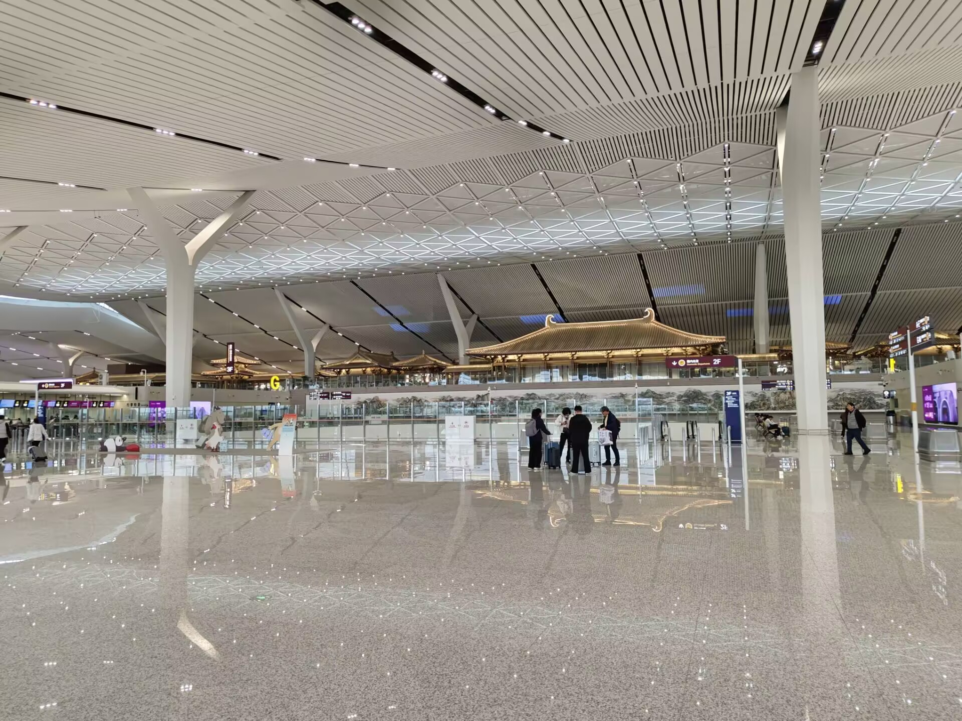 一早起来外面在下雨,收拾好行李去楼下打包了小笼包,打车到了西安南站,女司机开得很慢,当时感觉可能有点晚了,于是后面地铁换站都走得很急,但是后来到机场其实还有一段时间,到了T5航站楼,一眼看到了非常有西安特色的古建筑风格的装潢,后面才知道T5航站楼是今年2月才完工,那个建筑是展览修建机场时挖到的文物的机场博物馆,后悔在机场干等着没进去参观一下了,西安真不愧是遍地文物的古都。虽然已经有了电子登机牌,但是还是很想要一张纸质登记牌留作纪念,于是去自助值机机打印了一张,后来才知道自助打印的和柜台发放的登机牌是不一样的,自助打印的就是热敏纸,柜台发的材质会好很多,有点后悔了。